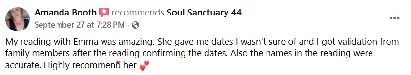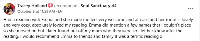 Welcome, I’m Emma, founder of Soul Sanctuary 44. I'm a certified Reiki Practitioner and Spiritual Medium offering psychic, clairvoyant and mediumship readings as well as Reiki healing from my peaceful sanctuary in Barnsley.